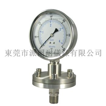 | 为了扩大各种通用型压力仪表的使用范围,能适应于测量强腐蚀、高温、高粘度、易结晶、易凝固和有固体浮游物、有食品卫生要求的的介质,以及对某些测量介质不能直接进入通用型仪表内和便于清洗防止沉淀物质积聚的场合的压力检测时,必须采用由隔膜隔离器与通用型压力仪表组成一个压力仪表量测系统此类组合压力仪表通称为隔膜式压力表简称隔膜表.PIONEER隔膜压力表由各种通用型压力仪表和不同结构的隔膜隔离器组成一个封闭系统,内充密封液。当被测介质的压力作用于隔膜时,则隔膜产生变形,压缩封闭系统中的密封液。由于密封液的固有性质,使压力仪表中的弹性组件产生相应的弹性变形—位移,经指示装置显示压力值。当隔膜的刚度足够小时,则压力仪表指示的压力就近于被测介质的压力值。PIONEER隔膜表主要被用于石油化工、制碱、化纤、染化、制药、食品和酿造、造纸、制碱、电子机械电力等工业部门测量系统或设备流体介质的压力。 |
