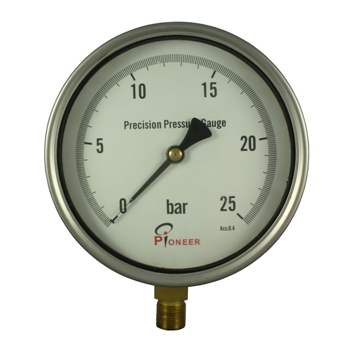 | 精密压力表又称标准压力表,它具有很高的准确性,是一种高标准的量测组件。精密耐震压力表是在仪表壳体内充入减震液使仪表抗震动,从而使寿命更长更耐用。仪表的作用原理是基于被测介质的压力通过接头进入弹簧管时,在介质压力的作用下,弹簧管自由端产生位移,此位移通过拉杆传至齿轮传动机构放大并带动指标逐将被测压力在表盘上指示出来。我司生产的精密压力表特采用由德国进口的高灵敏,低磨擦力的巴登管和刀锋状指针,能有效降低因为磨擦和读数误差而造成精度损失,从而提高仪表的准确率。 该仪表广泛用于工矿企业、计量室、科研单位实验室的部门,作为压力计量标准使用来调校、校验、工业用一般压力表,同时也用于工业流程、科学实验环节中的高准确度要求的压力测量和监控。一般情况,用于测量对铜合金不锈钢等无腐蚀性、非结晶、非凝固的各种介质的压力及真空。同时适用于检验一般压力表,作为压力测量的传递标准,也可用来精密测量对铜和不锈钢及其合金不起腐蚀作用的液体、气体和蒸汽的压力。可选全不锈钢精密压力表,因其对工作环境要求较低,抗腐蚀,耐高温(温度影响较小),耐压力脉冲可有效延长仪表的使用寿命;也可选用带调零装置的精密压力表,此型表可以避免零位漂移的错觉;还可选带镜面精密压力表,此型表读数直观,可以减少视觉引起的误差。可依客户要求订做。 特点: (1)精度高,寿命长; (2)抗震效果优; (3)外观亮丽,结构可靠; (4)耐腐蚀,耐高温; (5)有可靠的质保及良好的售后服务。 |